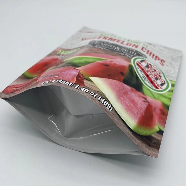 This stand-up zipper foil bag for watermelon fruit slices uses food-grade eco-friendly materials,